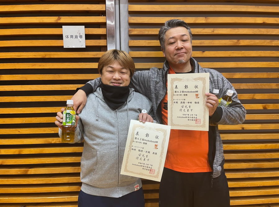 | 片岡 真悟・中村 敬彦 | まったりバド部 | 4 | 0 | 2 | 優勝 |